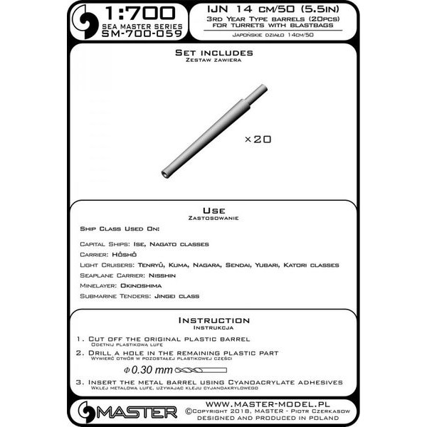 1/700 IJN 14 cm/50 (5.5in) 3rd Year Type barrels