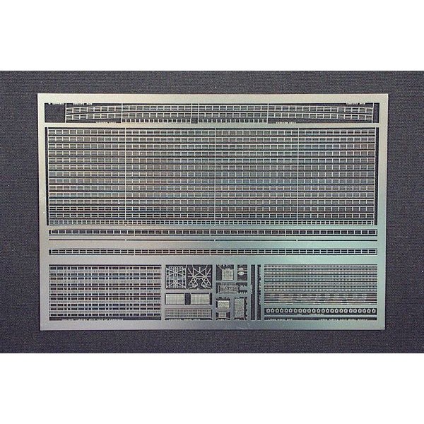 Railing in several styles including pre-shaped sections for upswept bow. Vertical and inclined ladders, life preservers, pulley block rigging. Radars: SK, SC, SC-2, 3, 4, &5, SA, SA213, SR, SRa, SRb, SR-5, SV. SJ, FuMo 61, and assorted radar grids for custom work.