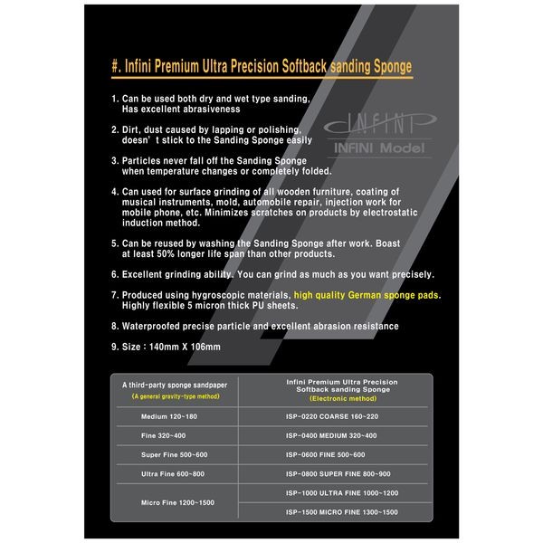 1. Can be used both dry and wet type sanding. Has excellent abrasiveness